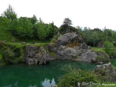 "Pozo minero donde se pueden pescar, en un precioso entorno, black-bass, carpa y trucha arcoíris."